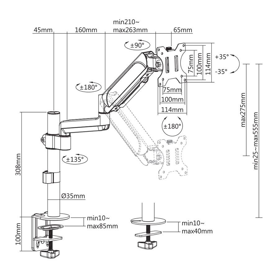 Verstellung: +/-90°